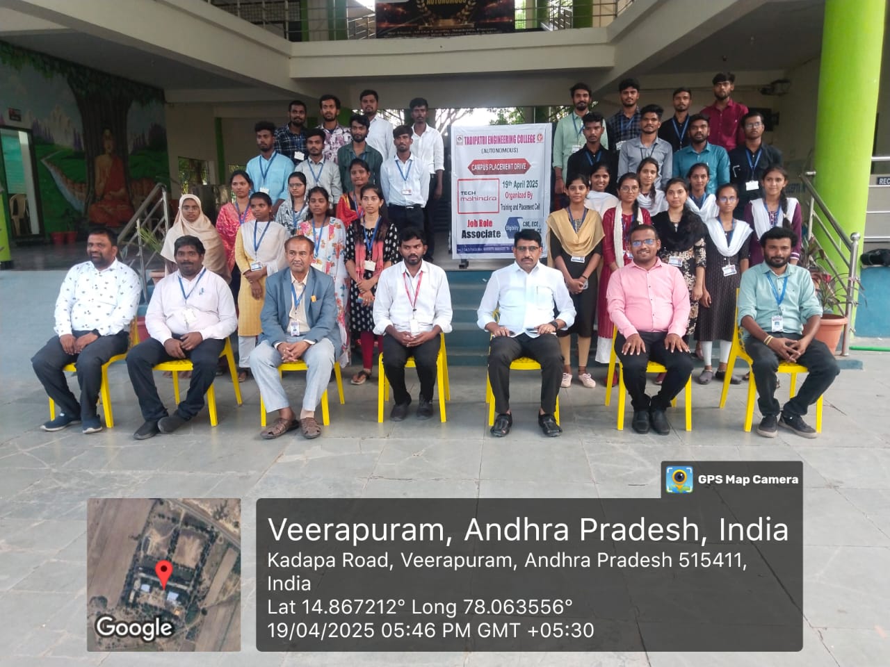 Tadipatri Engineering College was established at Tadipatri in Anantapuram District, Andhra Pradesh, India, with an objective of providing quality and value education to the students. It is one of the flagship institutions started by the well known Philanthropist Sri. Ramesh Reddy K.,and Sri. Suresh Reddy.K Secretary and Correspondent along with his young and energetic committee members.